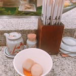 梅寿司 - 小鉢。私は里芋の煮付けでしたが隣の席の方は冷奴でした。数種類あるようです。